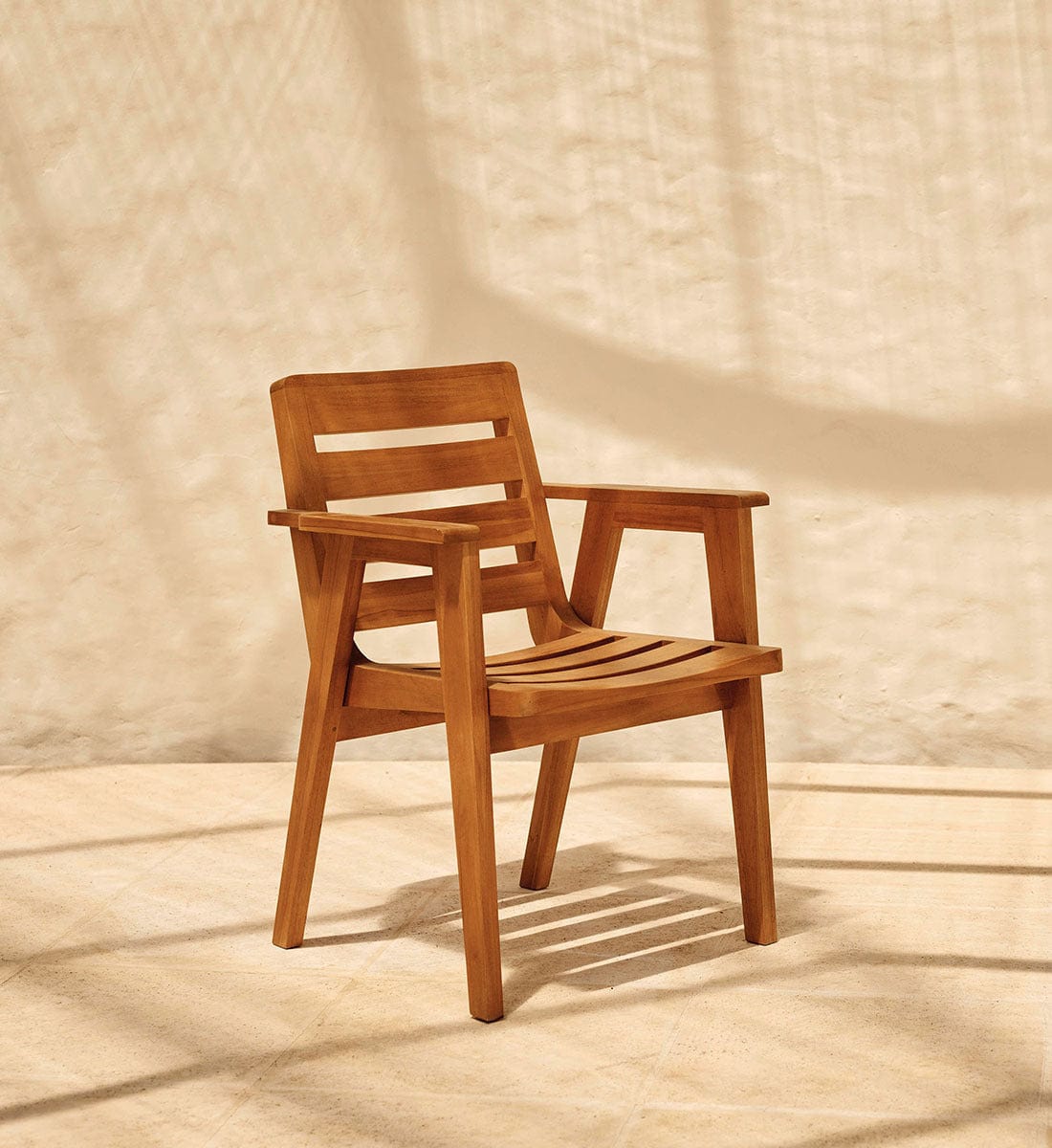 Made to be versatile. The Masaya Stacking Chair is our new teak dining chair.
