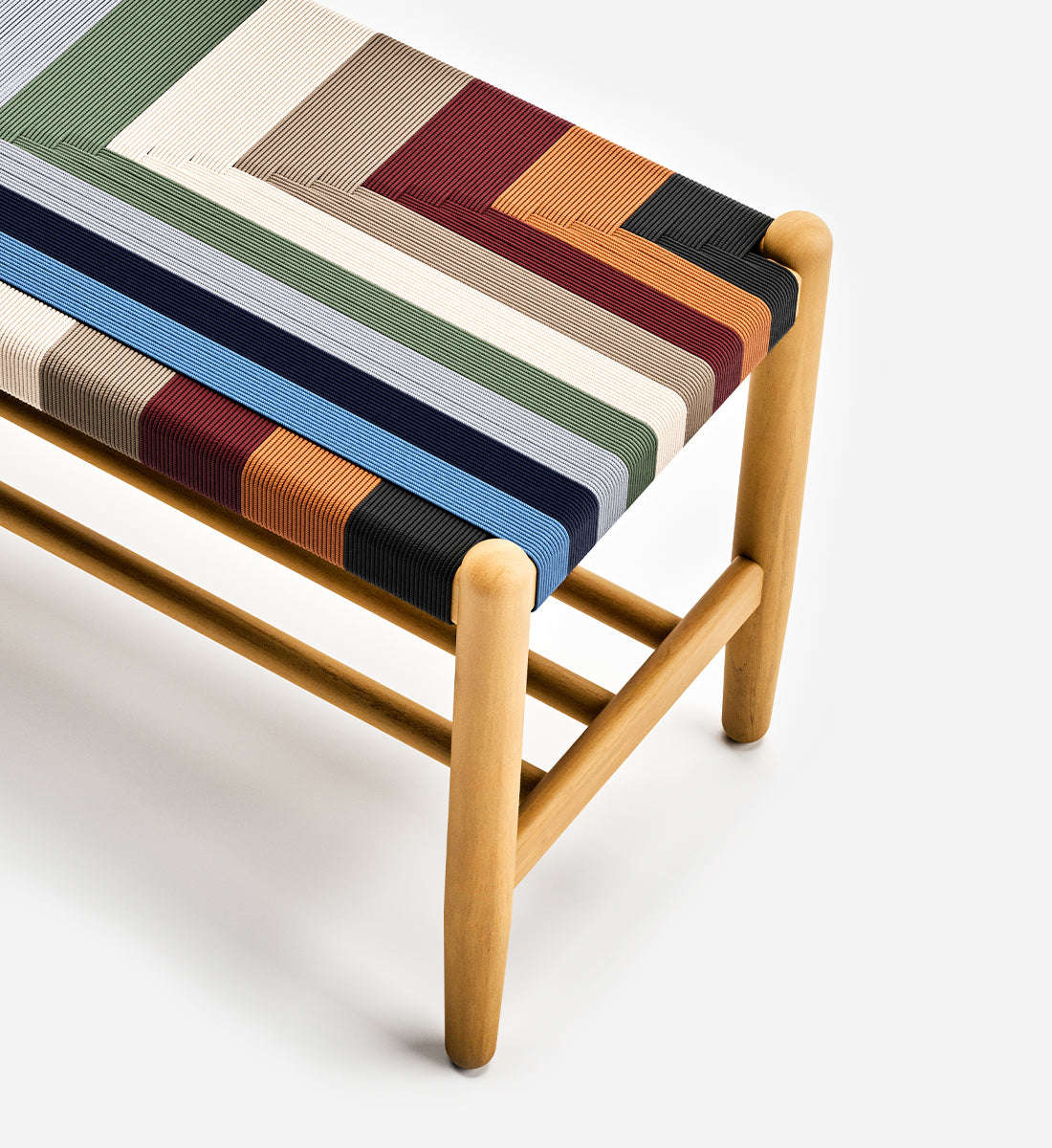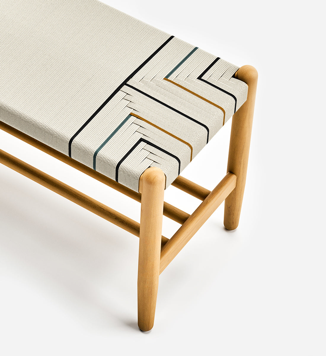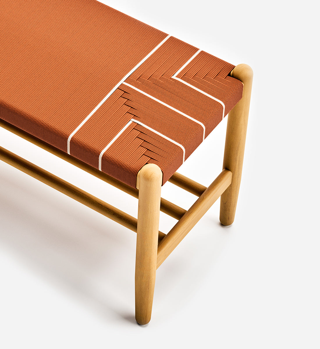 Catalina Bench is a crafted, handwoven, sustainable furniture piece with intricate braid design that is both elegant and durable. Handmade from teak wood sustainably harvested from our reforestation projects.