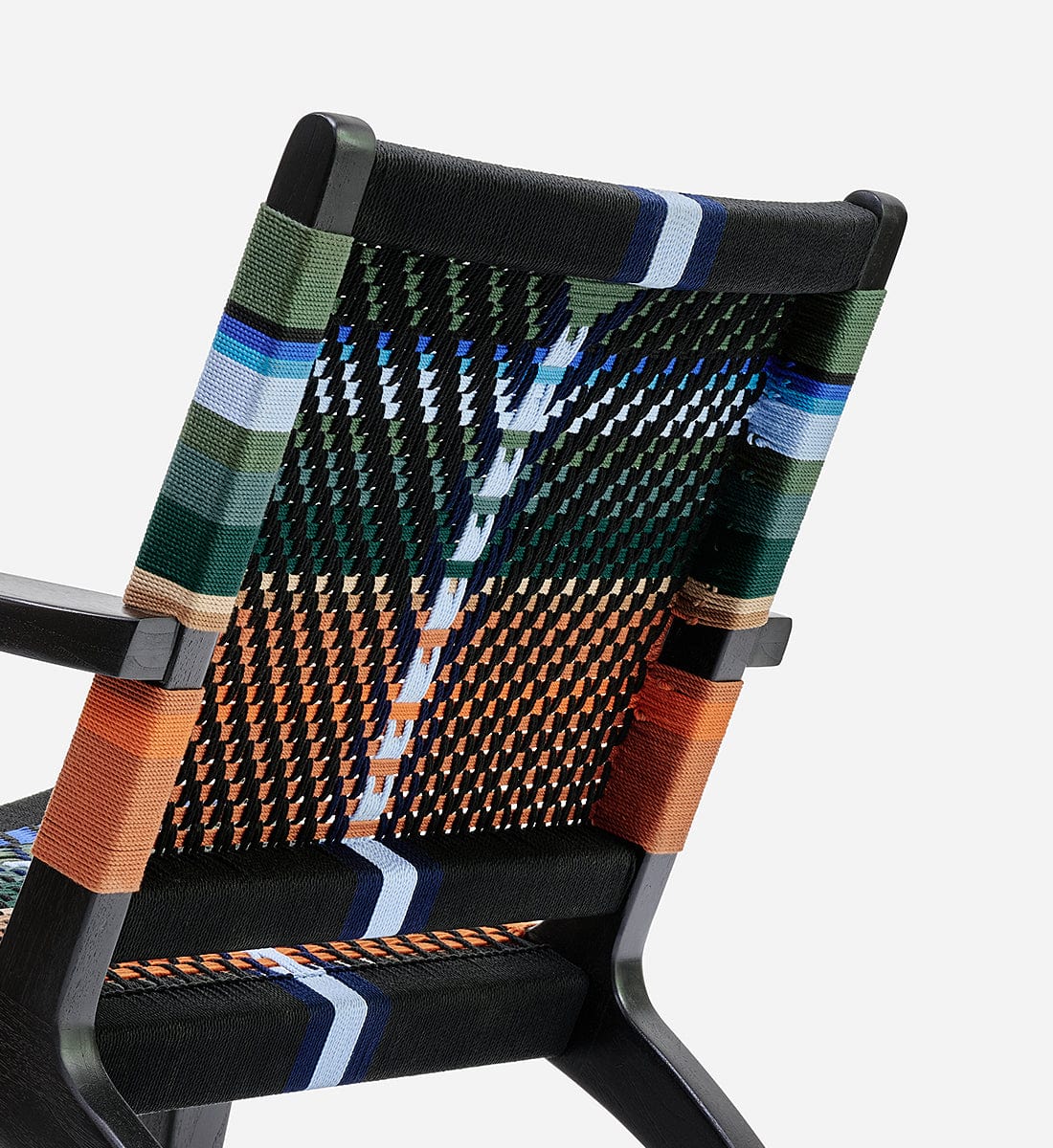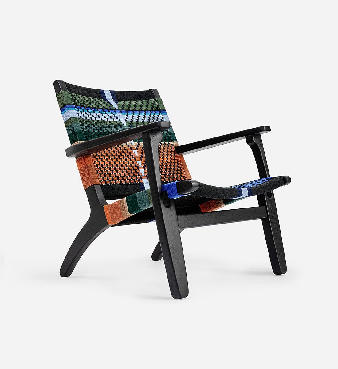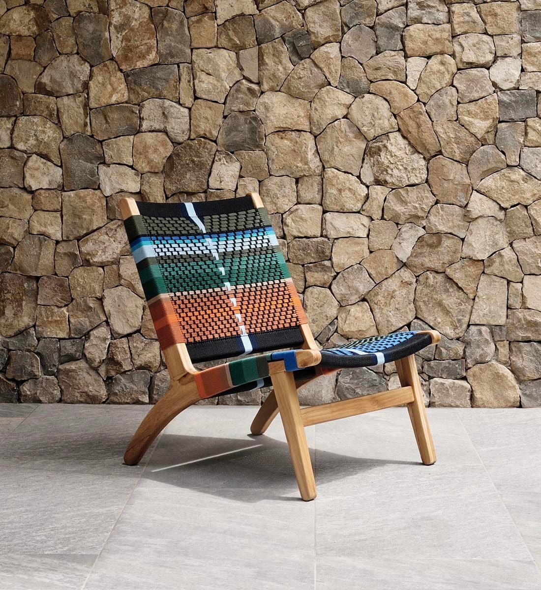 Each piece is handmade from FSC®-Certified teak wood and woven using durable homespun polyester cord.