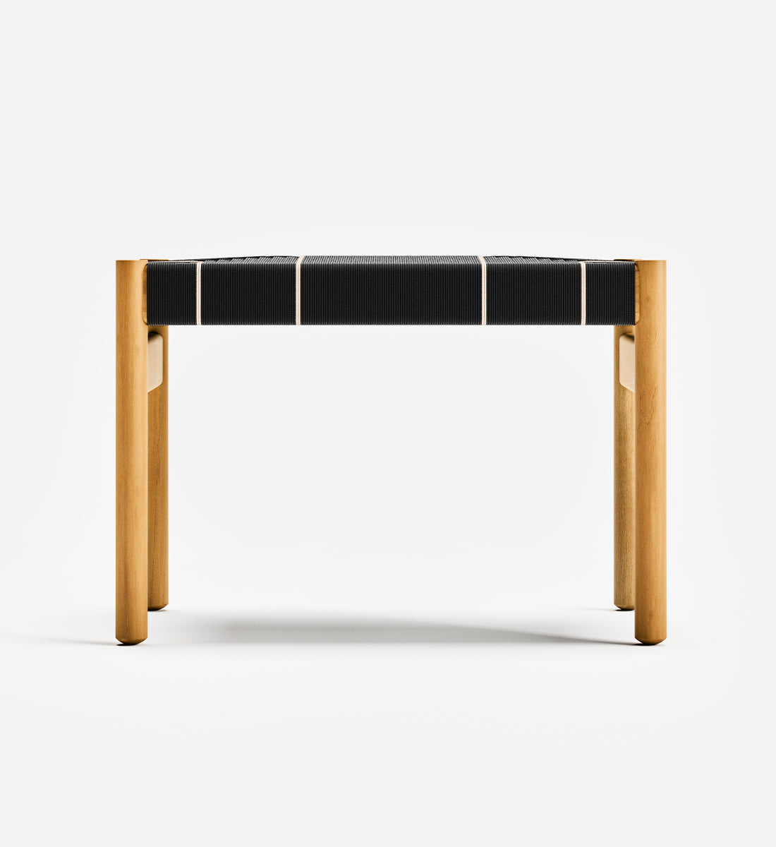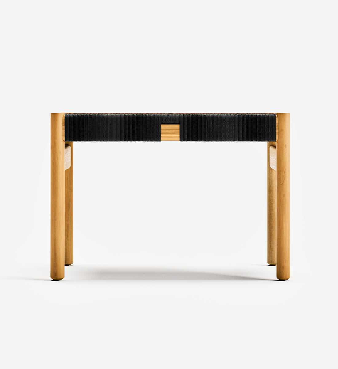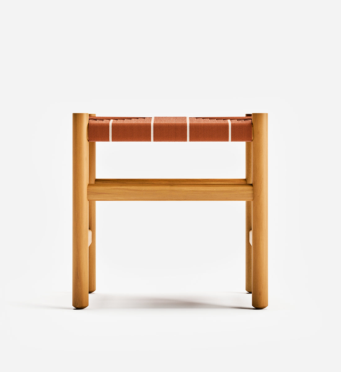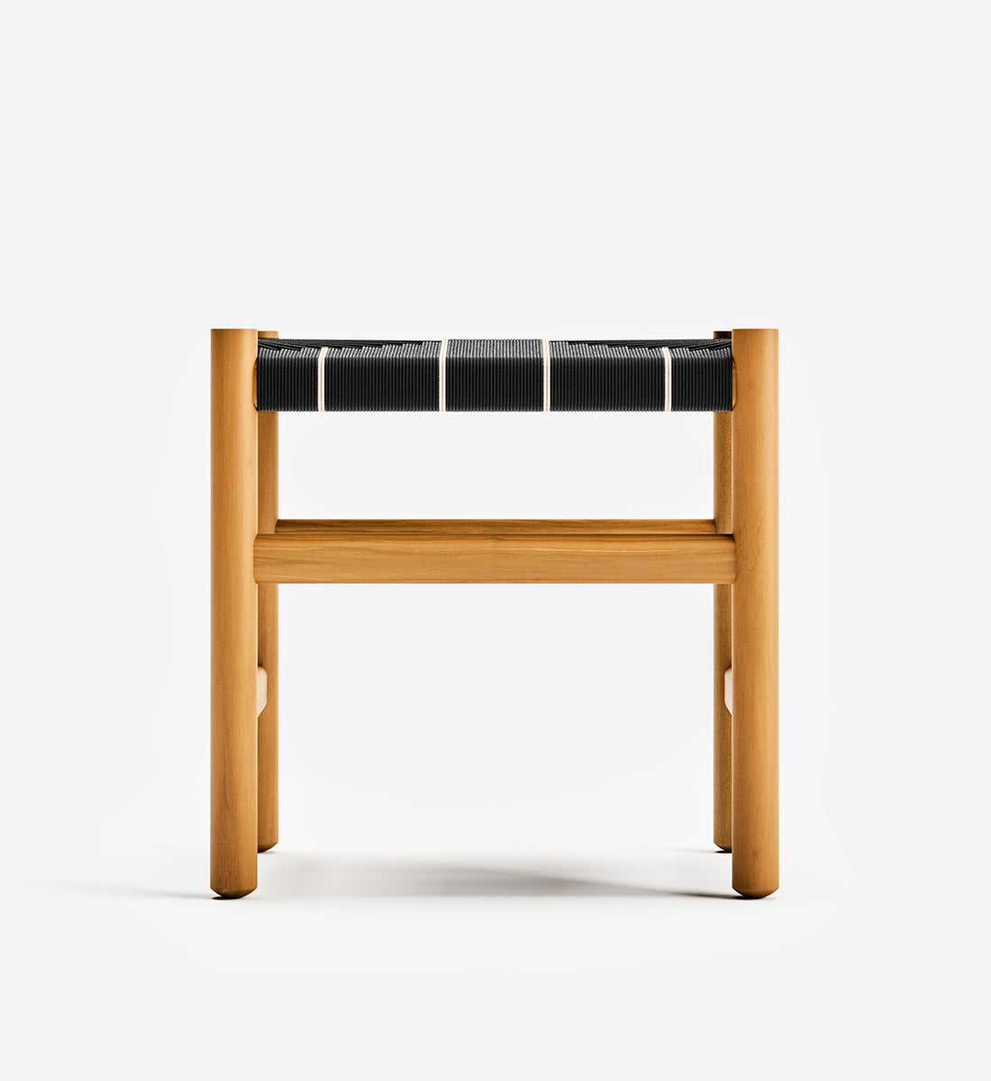 Each piece is handmade from FSC®-Certified teak wood and woven by hand using durable homespun polyester cord.
