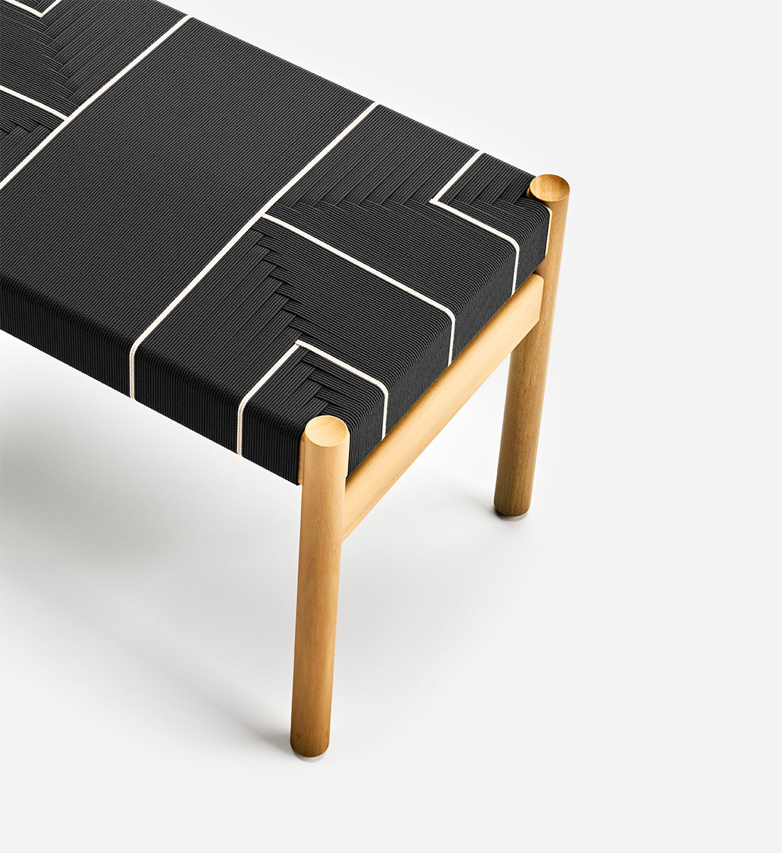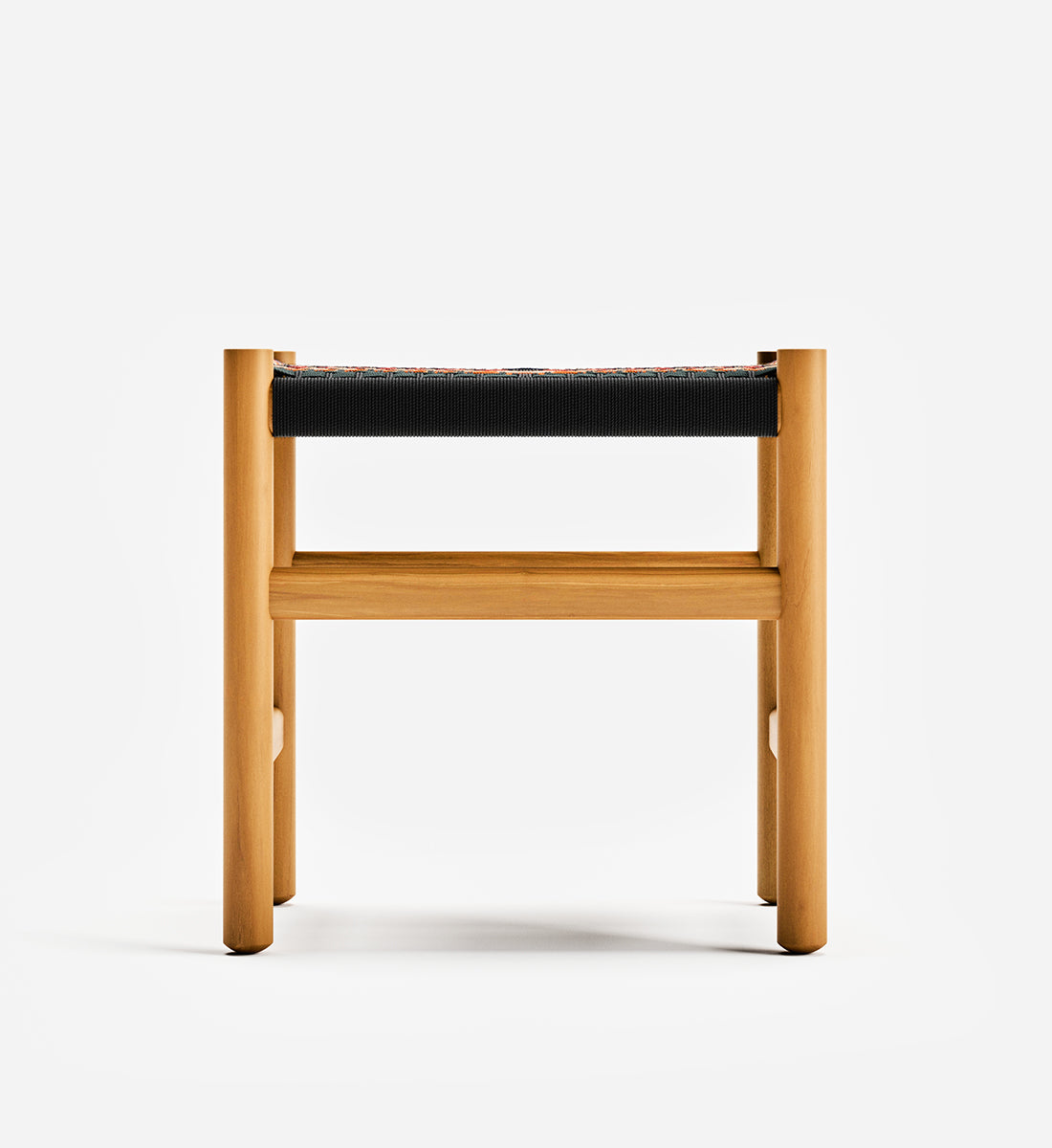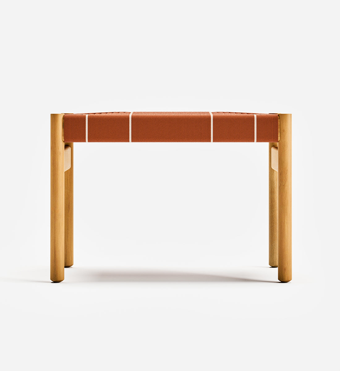 Each piece is handmade from FSC®-Certified teak wood and woven by hand using durable homespun polyester cord.