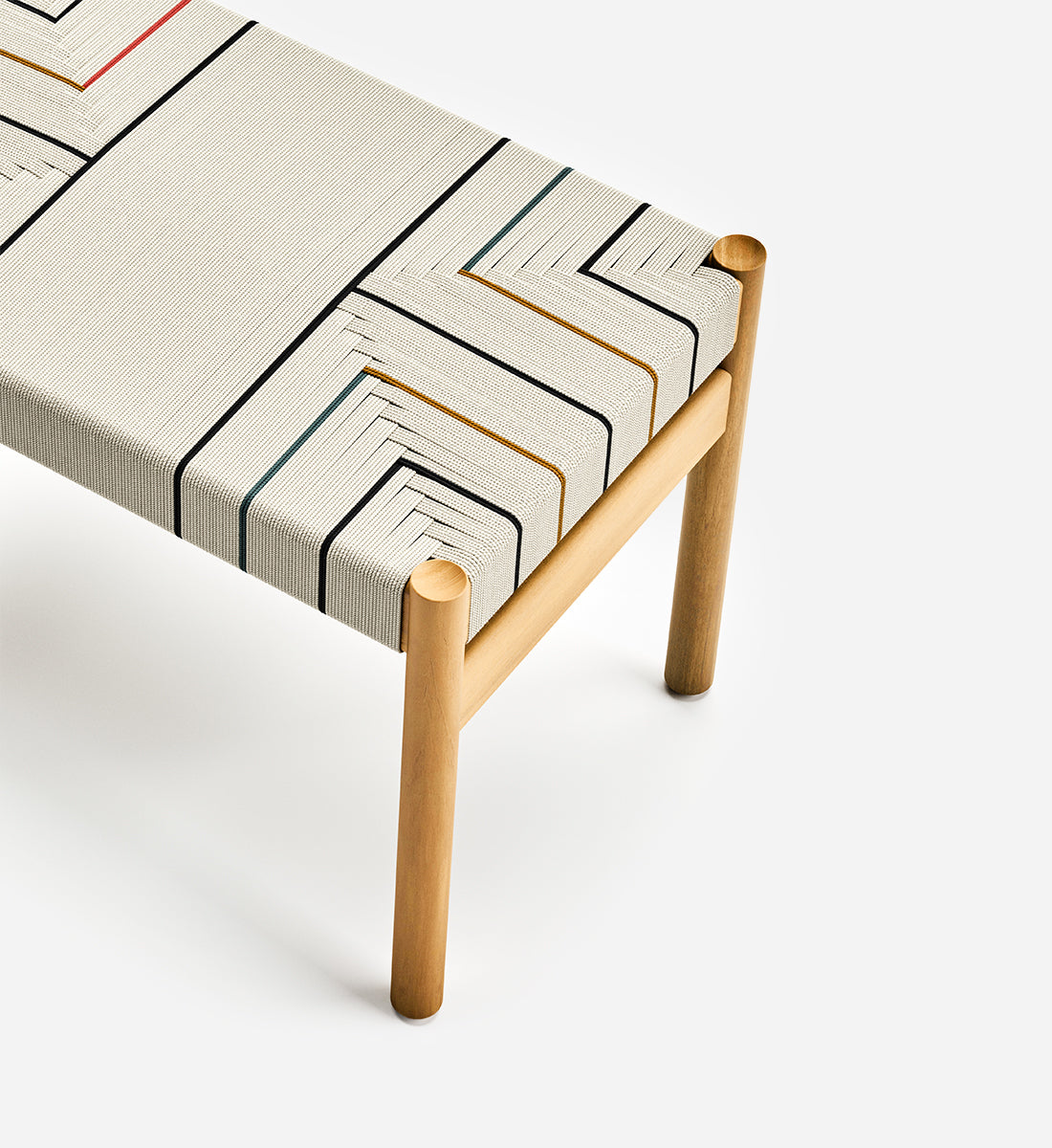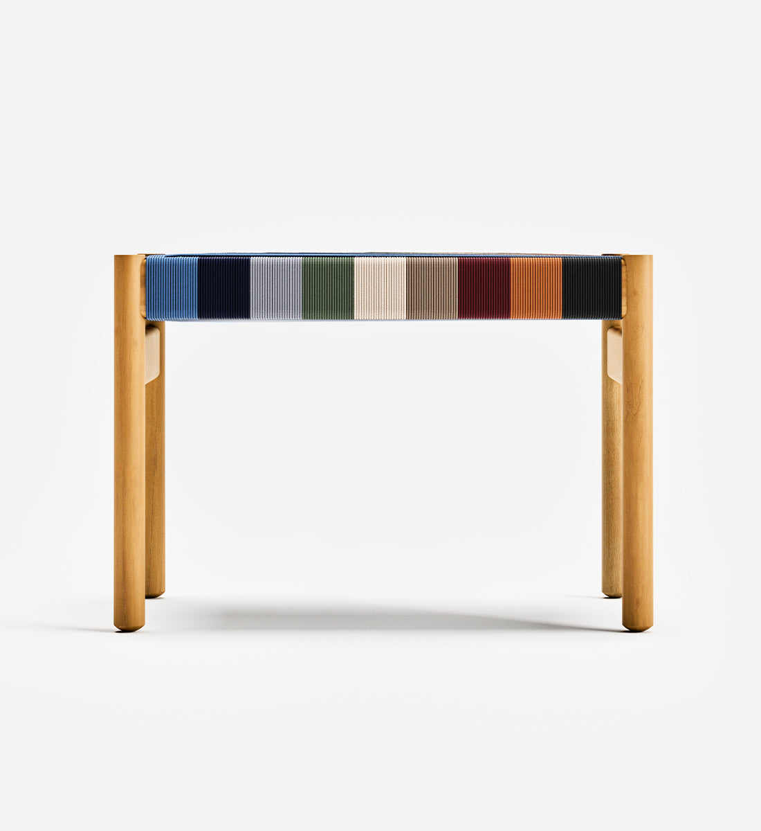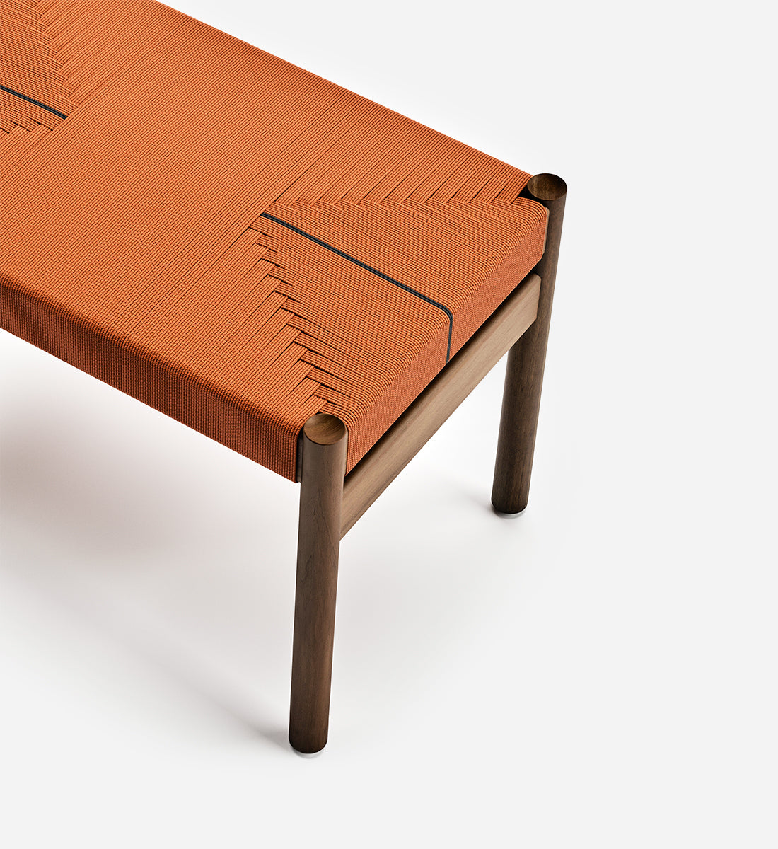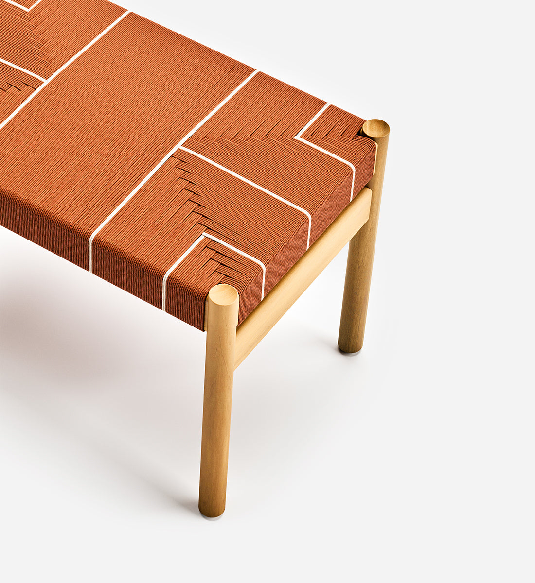 Each piece is handmade from FSC®-Certified teak wood and woven by hand using durable homespun polyester cord.