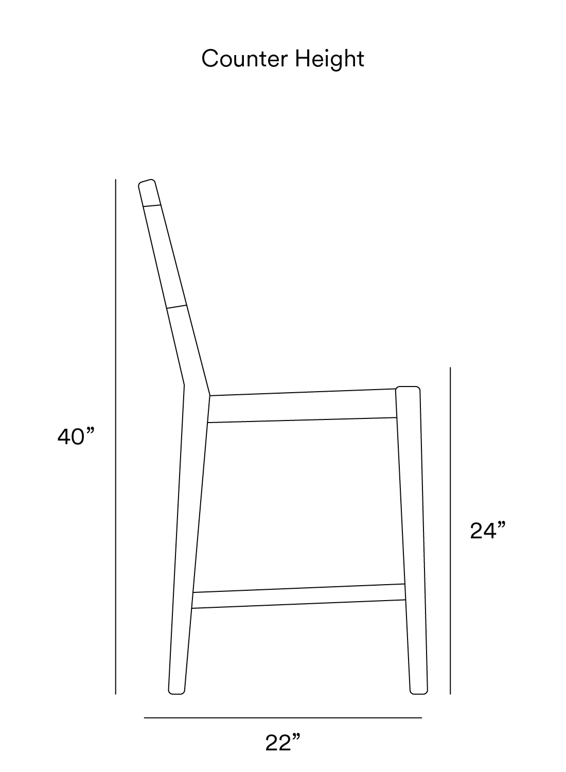 Counter Height 19.5” Width | 22” Depth | 40” Height | 24” Seat Height