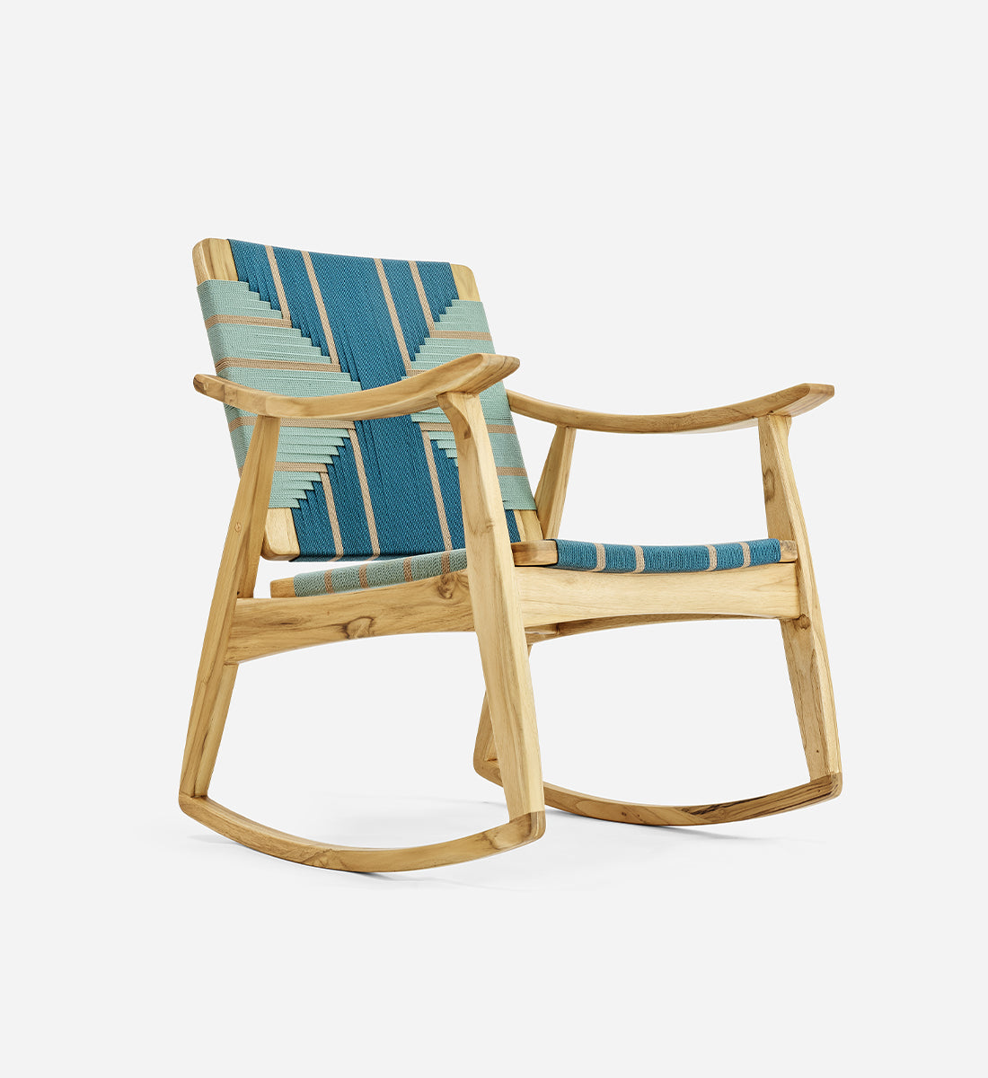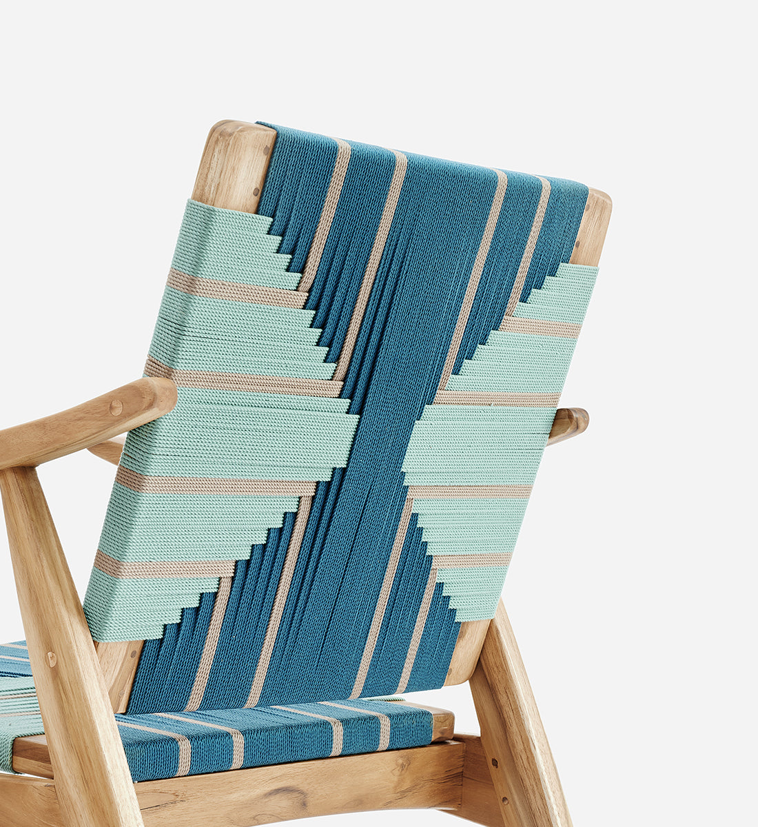 Each piece is handmade from FSC®-Certified teak wood and woven using durable homespun polyester cord.