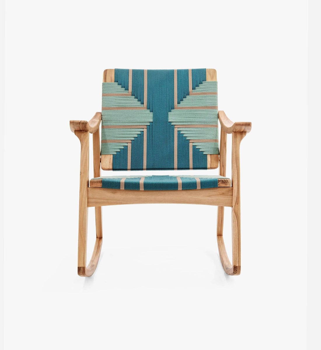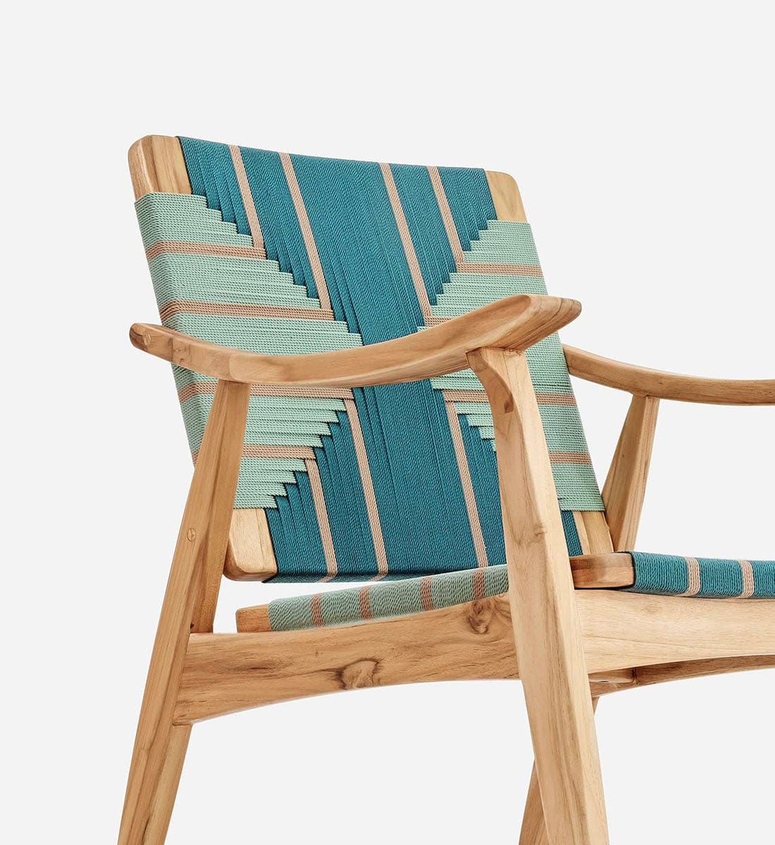 Each piece is handmade from FSC®-Certified teak wood and woven using durable homespun polyester cord.