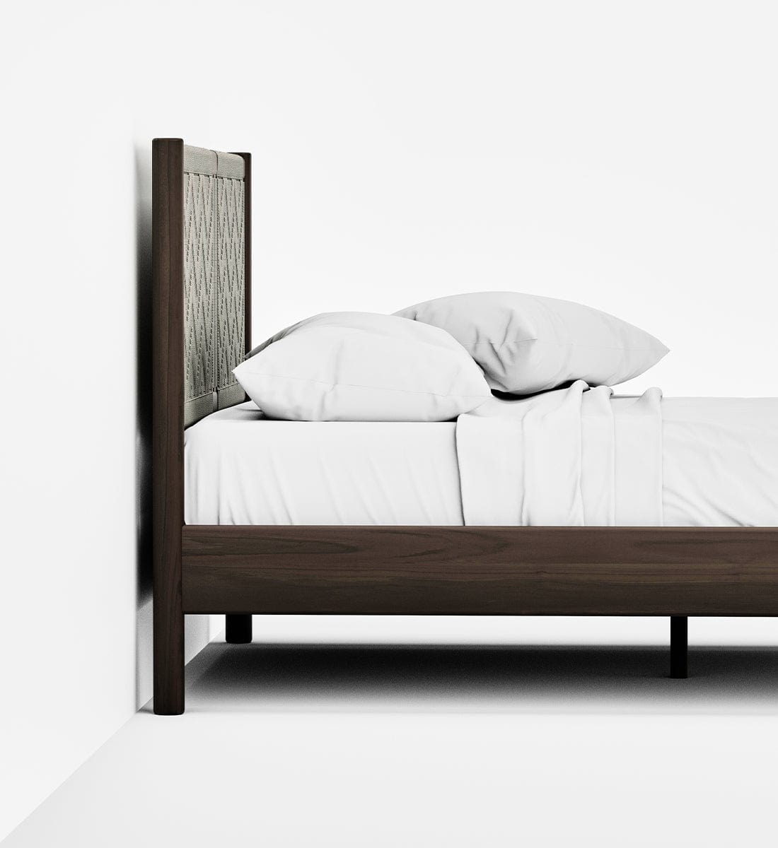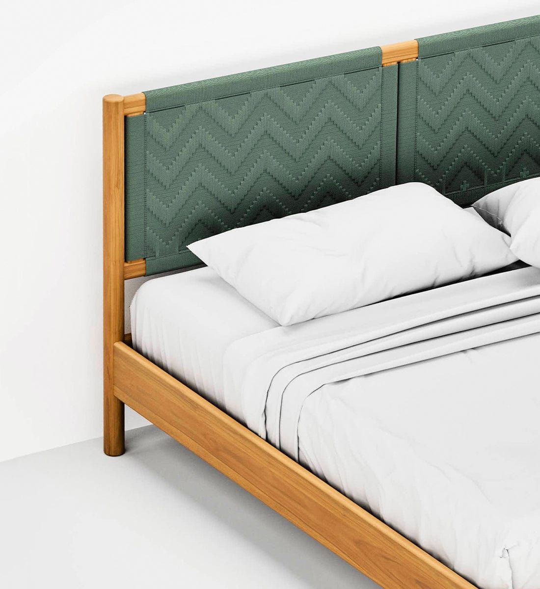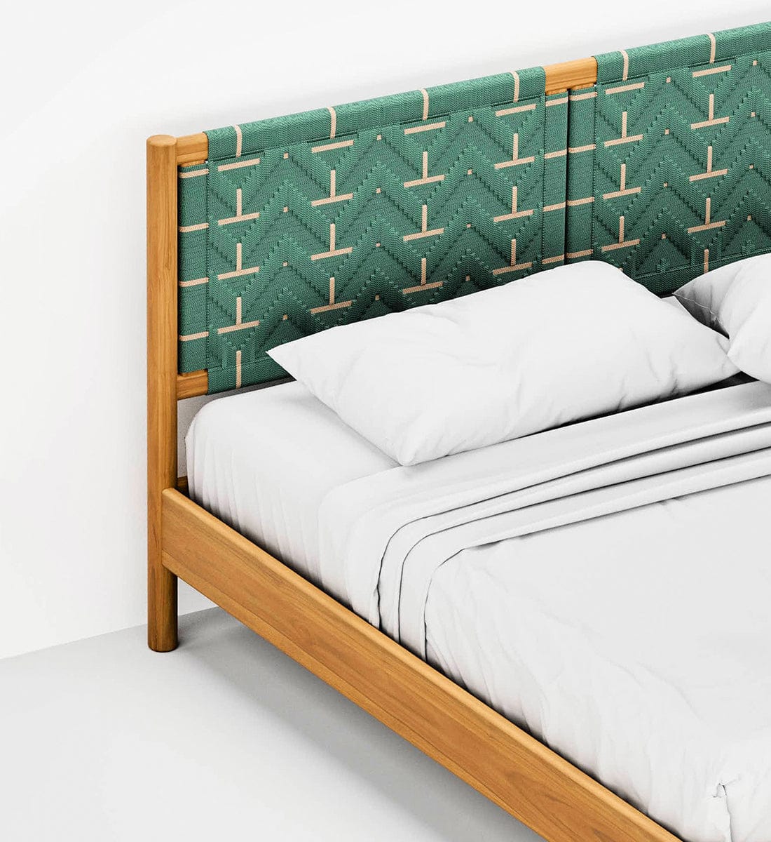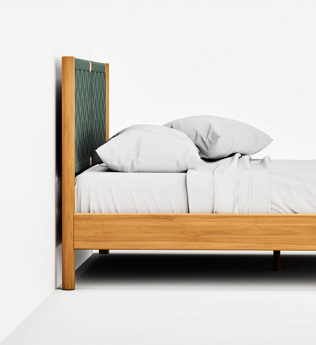 The Catalina Bed with Wooden Back, crafted from FSC® certified teak wood, features a slatted headboard, sturdy construction, and timeless elegance. A sustainable, handcrafted bedroom furniture piece for the eco-conscious.