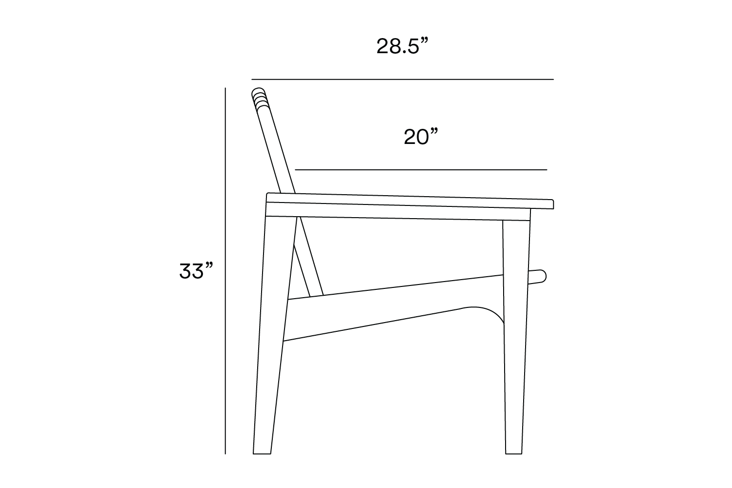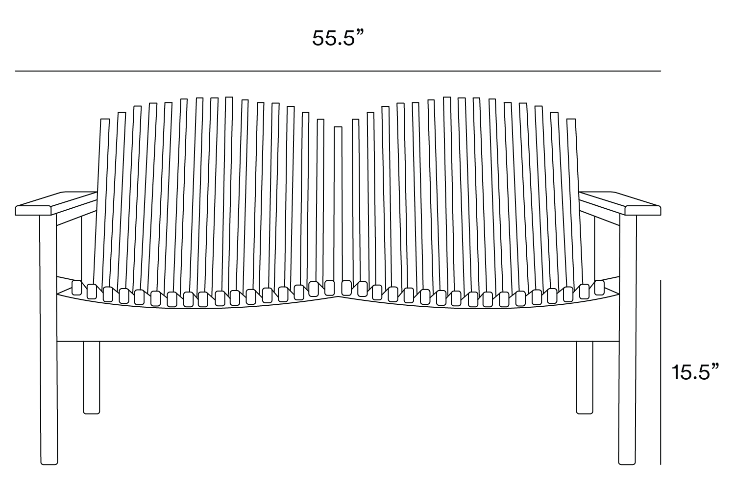 55.5” Width | 28.5” Depth | 33” Height | 15.5" Seat Height | 23" Arm Height